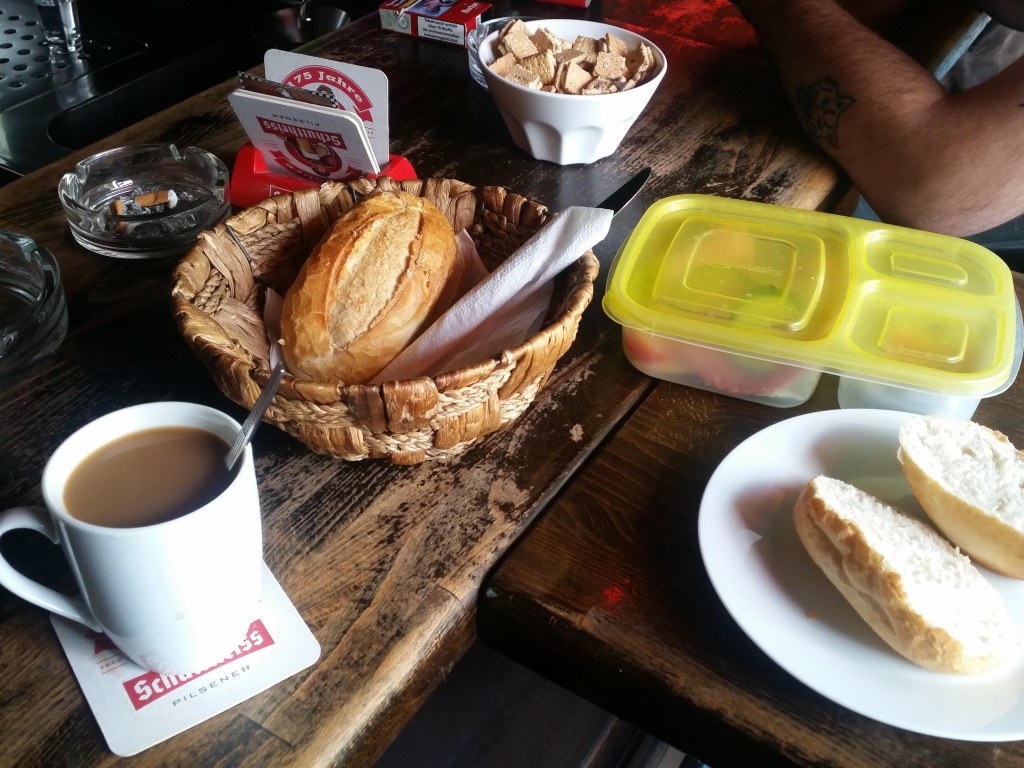 Wie der Alte, der für seine Arbeit als Altenpfleger gerne etwas mehr Gehalt hätte und nicht nur 1500 Euro in Vollzeit. Wie bei einem der Muskelbepackten, Rockerkluft und Tätowierungen, der als Sicherheitsmann in Krankenhäusern arbeitet und endlich mit seiner Frau in eine etwas größere Wohnung ziehen möchte, doch sich das in Berlin nicht leisten kann. Der zwölf Stunden am Stück arbeitet, dabei viele Überstunden schiebt und an die Rente gar nicht denken mag. Wie bei einem anderen Gast, der am Görlitzer Bahnhof von Dealern verprügelt wurde, weil er die Drogen mit einem zu wagemutigen Spruch abgelehnt hatte. Oder bei der Frau, deren Mann seinen Arsch zuhause nicht hochkriegt, nicht hilft, nichts macht, nicht arbeiten geht. Oder bei der Mutter, deren Sohn als Jugendlicher schon Herzinfarkte hatte und deswegen nicht Feuerwehrmann werden kann. Oder bei dem Handwerker, der mit seinen Betrieb Insolvenz anmelden musste, weil größere Firmen einfach die Rechnungen nicht bezahlt haben, wie er erzählt, der jetzt Hartz IV bekommt, grad nicht weiß, wie es weitergehen soll.