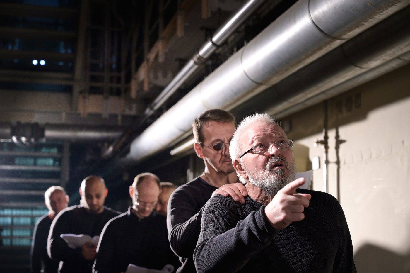 Es ist 16 Uhr. Ein Wärter bringt die Häftlinge in den stillgelegten Zellentrakt, den sie für die Theaterarbeiten nutzen können. Es sind elf Männer. Völlig normal gekleidet. Wie eine bunte Berliner Mischung, die eben aus der U-Bahn gestiegen ist. Da ist Chris Templiner, den sie aber nur „den Bär“ nennen. Kurze Haare, Brille, 55 Jahre alt, zwei Bücher hat er geschrieben und auf Amazon veröffentlicht. Seit 38 Jahren ist er im Gefängnis. Er würde gerne noch ein bisschen was von der Welt da draußen sehen. „Es gibt niemanden, der mir vergeben kann, was ich getan habe. Aber ich war jetzt mehr als lang genug hier drin“, sagt er. Da ist Kurt, weißes, schütteres Haar, weißer Bart. Er ist der älteste von ihnen und braucht einen Rollator. Da ist Peter Maier, eine Glatze hat er, eine volle Stimme, mit der er seine Worte so exakt betont, als ob er direkt von einer Opernbühne gestolpert wäre. Adrian Zajac wiederum ist Mitte 30, Brille, stylisch rasierter Bart, ebenfalls eine Glatze. Zur Premiere wird seine Familie kommen, da will er alles richtig machen. „Ich habe ja bisher in meinem Leben nicht viel richtig gemacht“, sagt er. Auch er wird noch viele Jahre hier sein. Da ist noch Apo, der immer Witze zu machen scheint, ob nun gerade passend oder unpassend. Da ist Hüdayi, der kaum ein Wort deutsch spricht, dafür ein türkisches Gefängnislied so traurig singen kann, dass man fast weinen möchte.